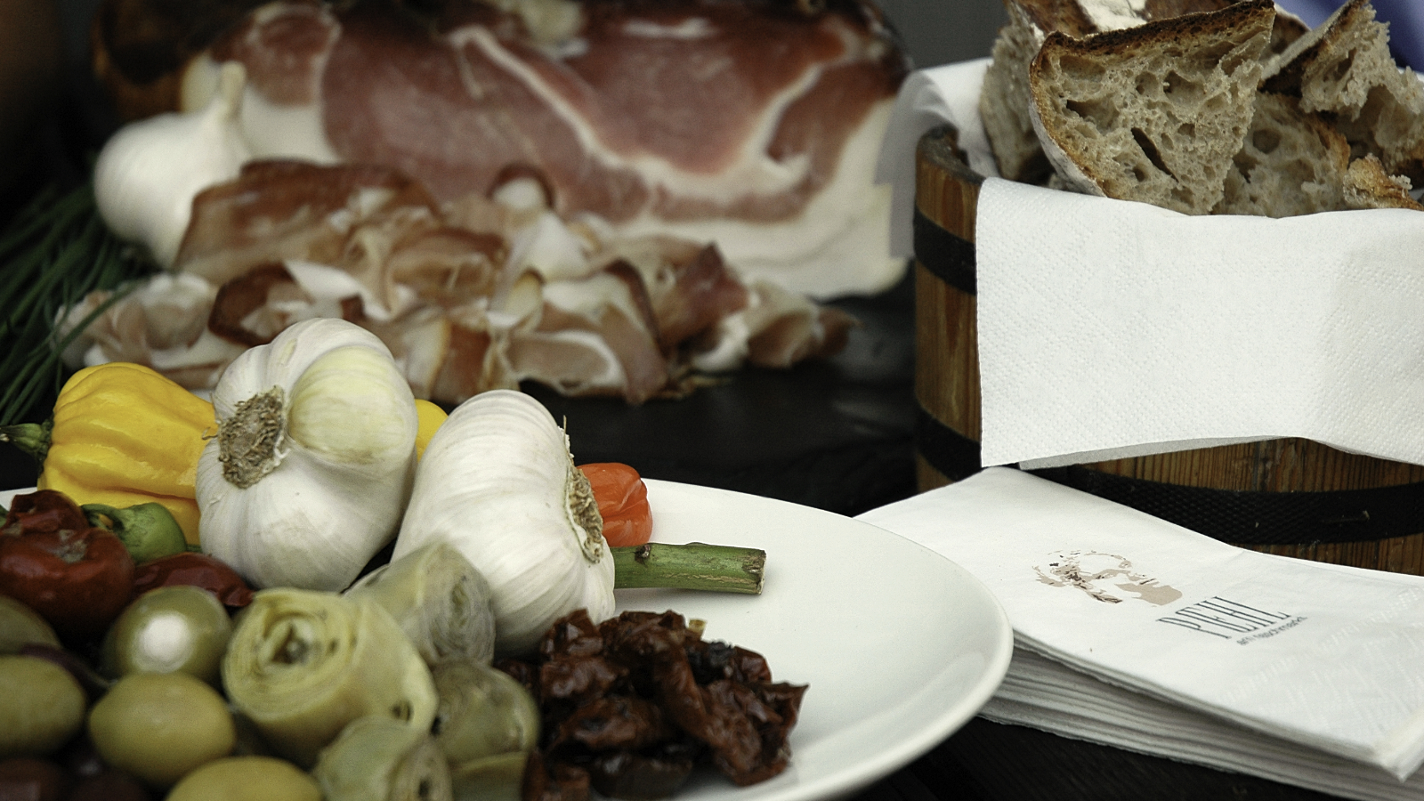 So schmeckt der Sommer: Antipasti, Schinken und frisches Öfferl Brot zum Genuss bei Poehl am Naschmarkt